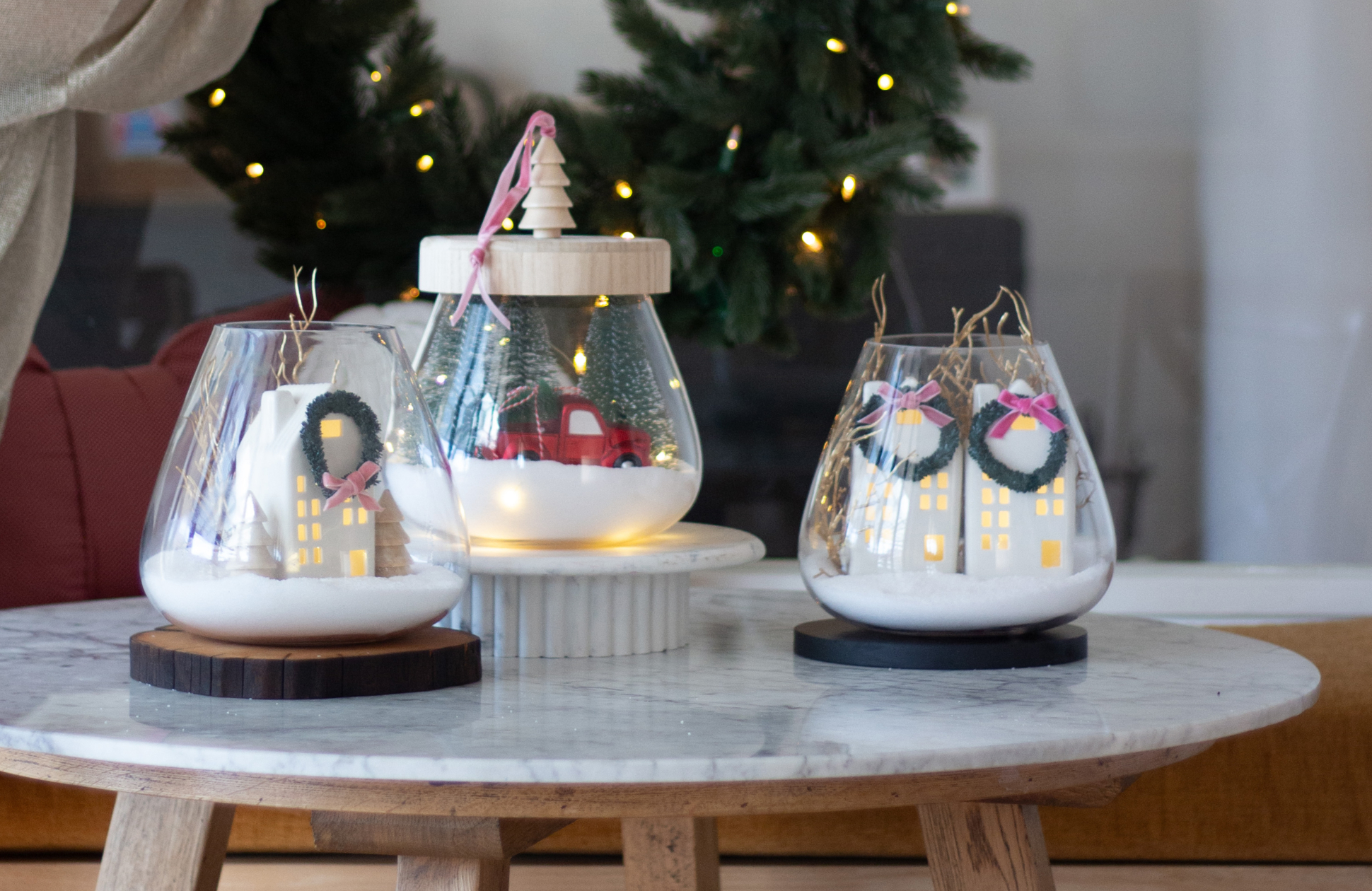 5. For a beautiful display, group two or three vases of different heights to create a glowing Christmas street scene.